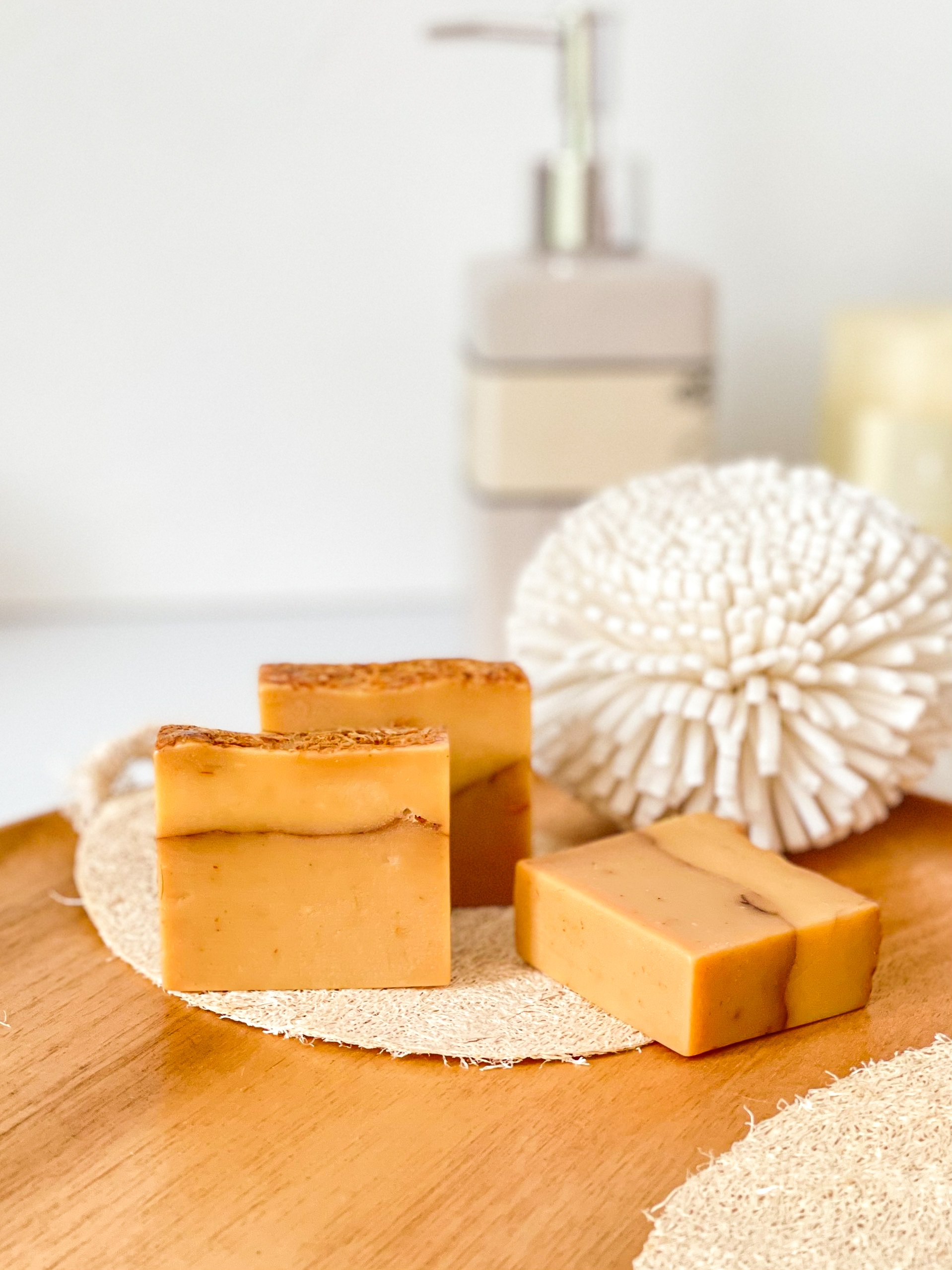 Xà phòng thiên nhiên: Không chỉ làm sạch mà còn mang lại cảm giác mềm mại, nuôi dưỡng làn da với hương thơm dịu nhẹ.