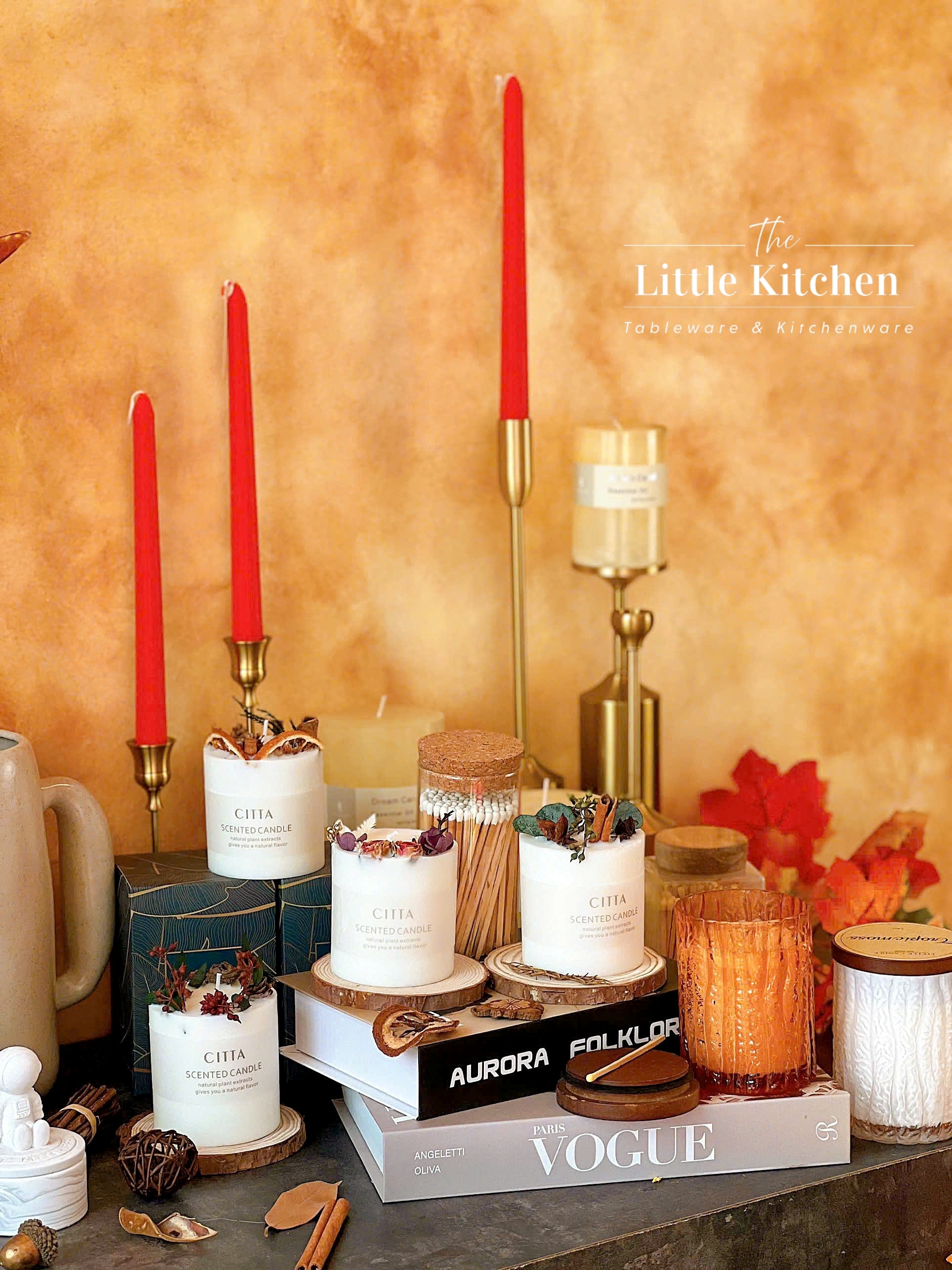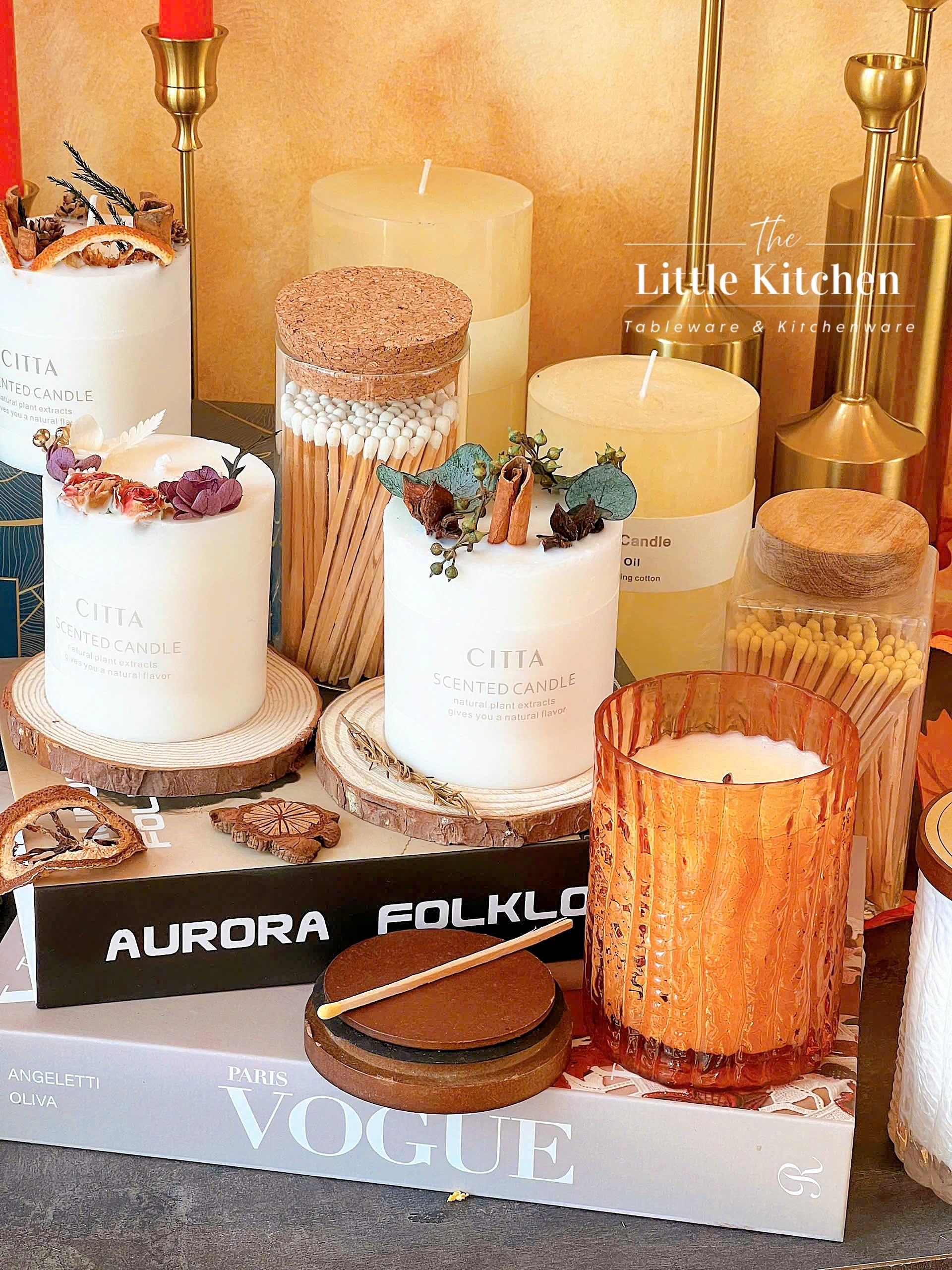 Nến thơm: Giúp cân bằng cảm xúc, giảm căng thẳng và lan tỏa hương thơm dễ chịu khắp căn phòng.