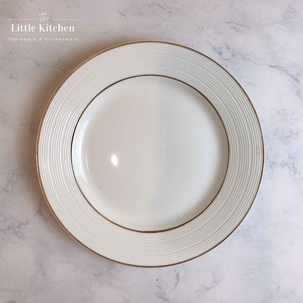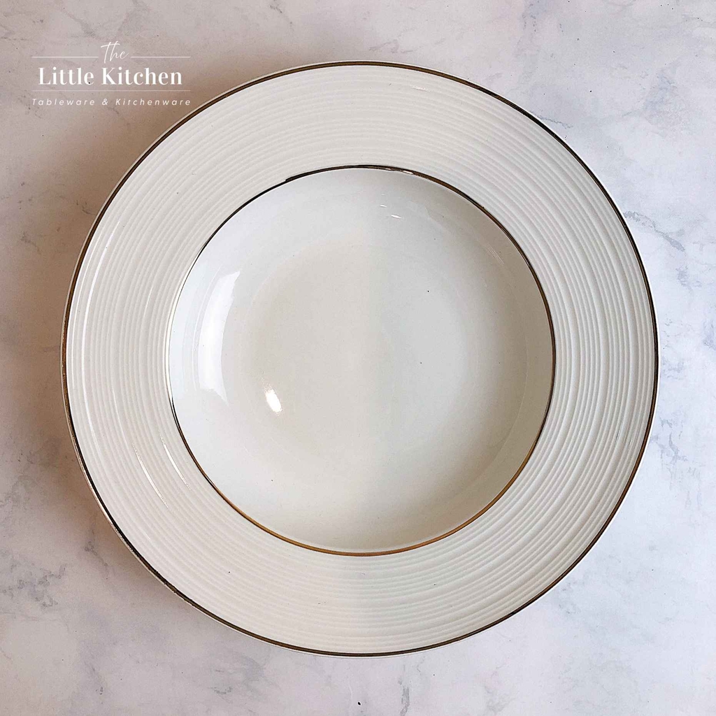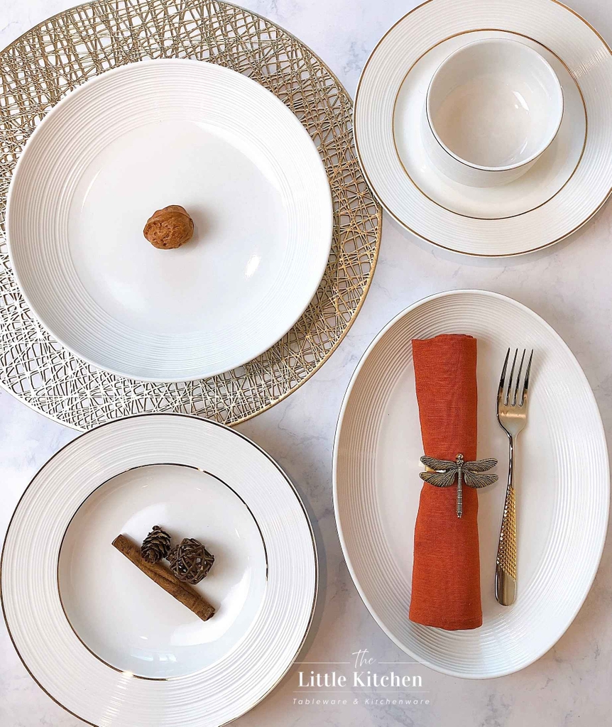 Bộ bát đĩa cao cấp màu trắng họa tiết gân viền vàng
