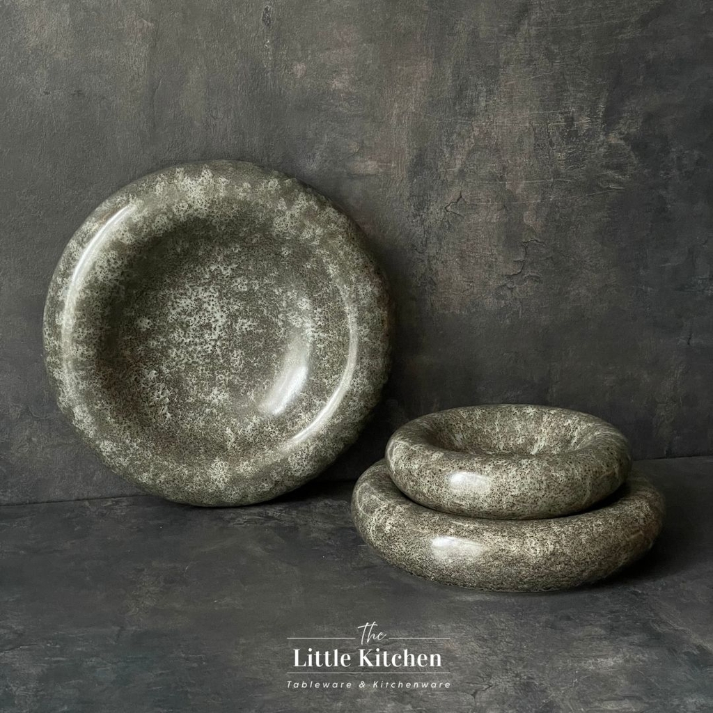 Đĩa kiểu đặc biệt giả đá hình tròn màu ghi