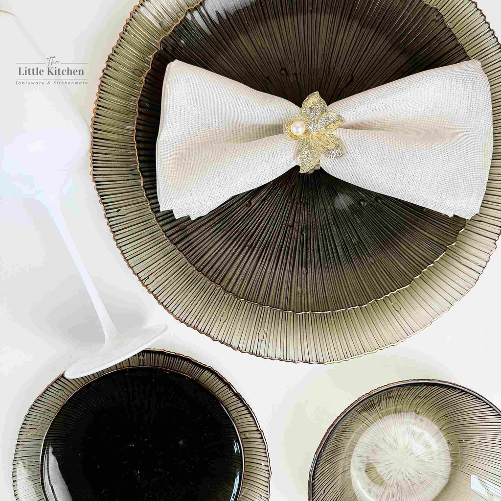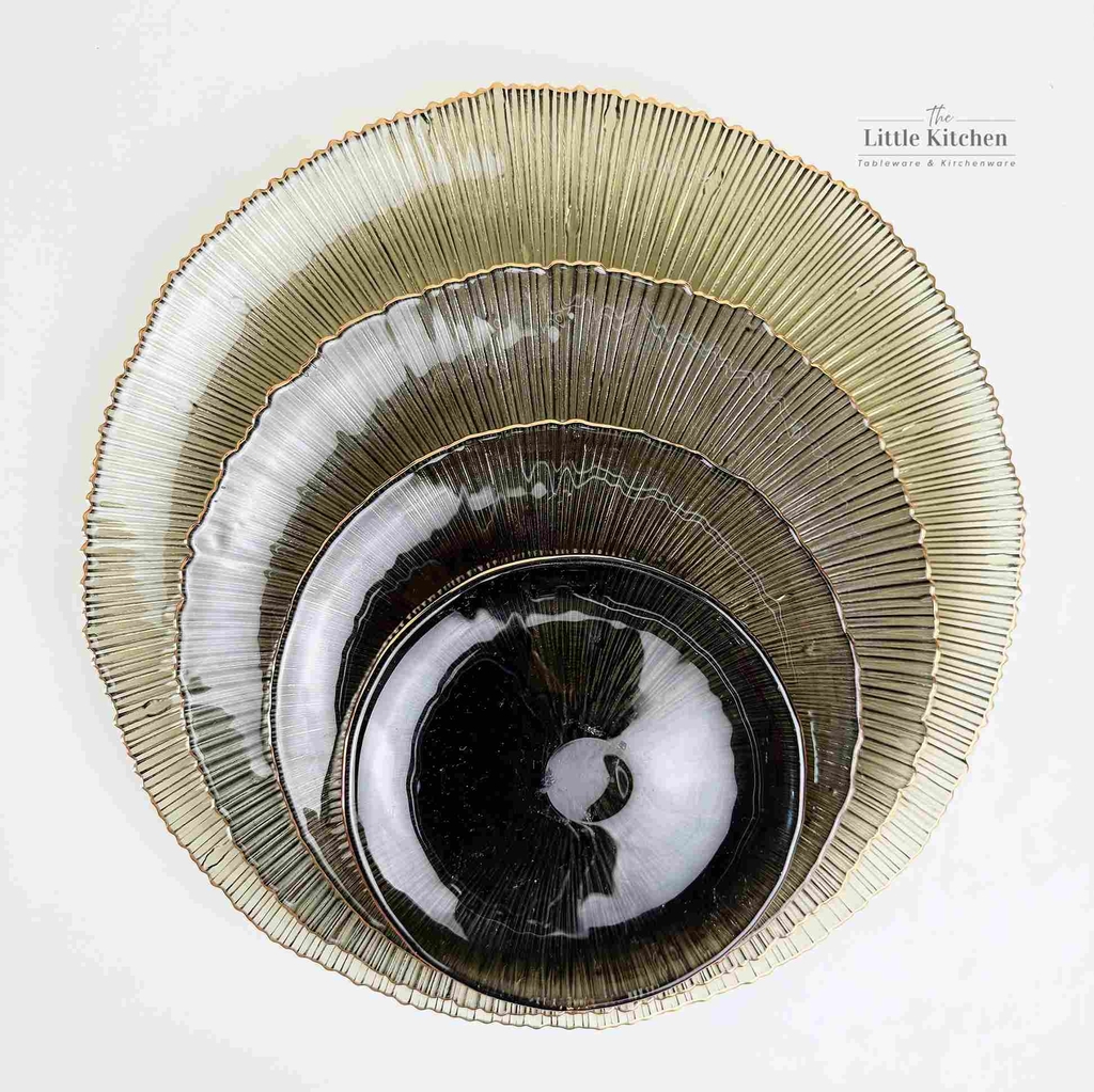 Đĩa thủy tinh tia ghi viền vàng