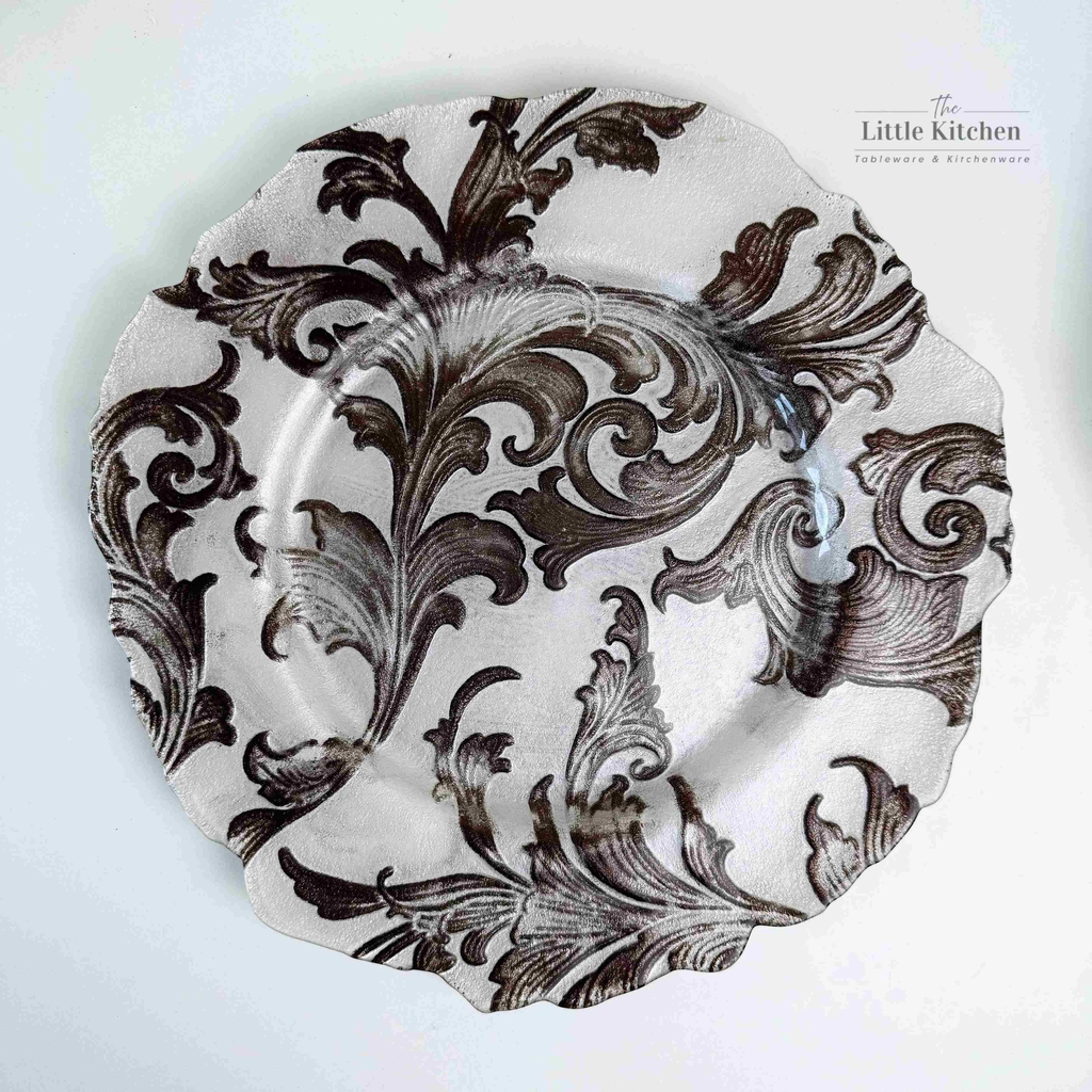 Đĩa thủy tinh trắng hoa văn