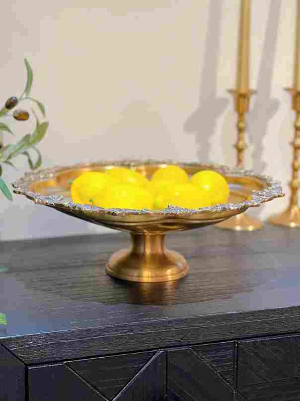 Đồng Ấn Độ khay cao tròn viền họa tiết