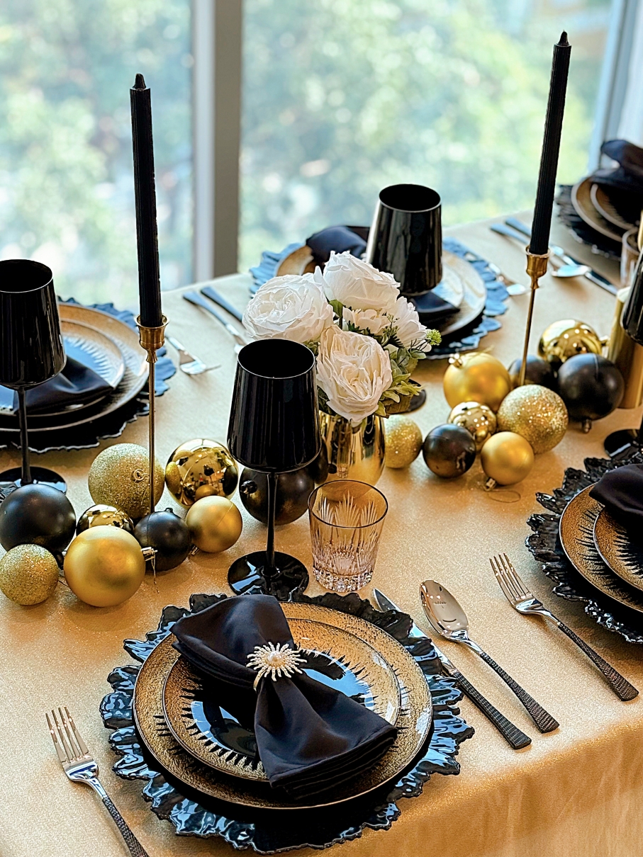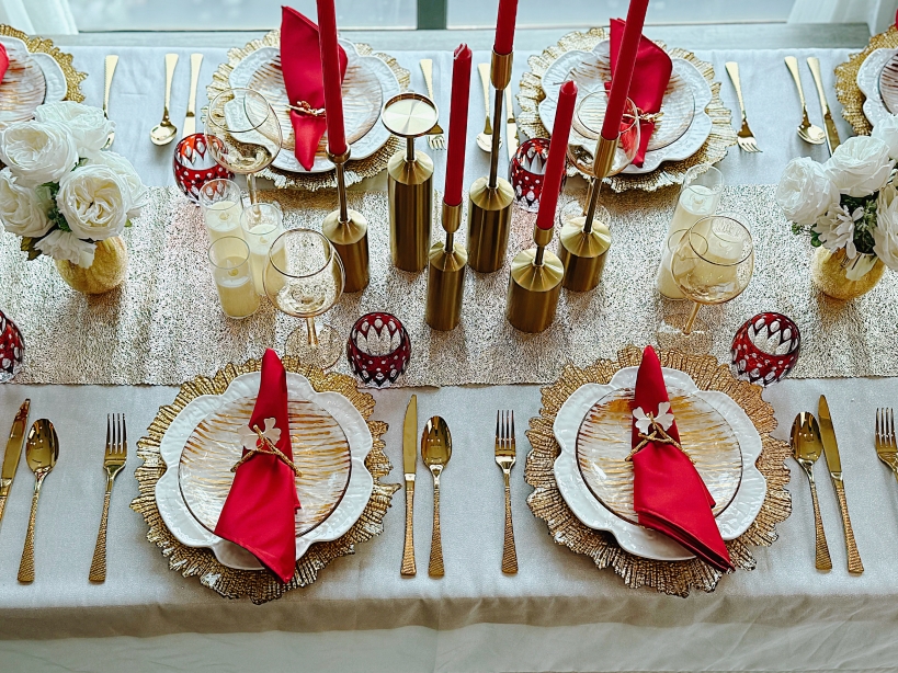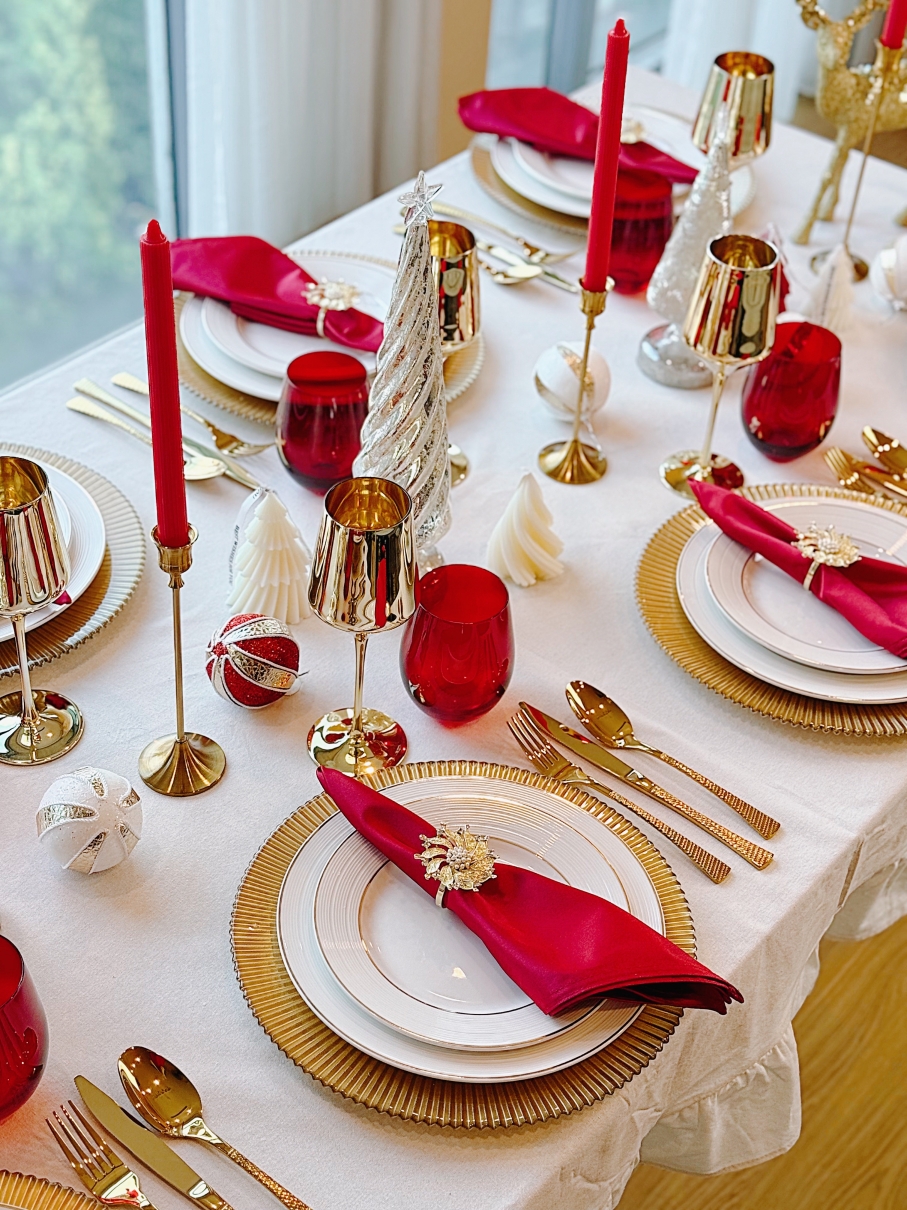 Bàn tiệc màu gold luôn là "đỉnh cao" của sự sang trọng trong những bữa tối Giáng sinh.