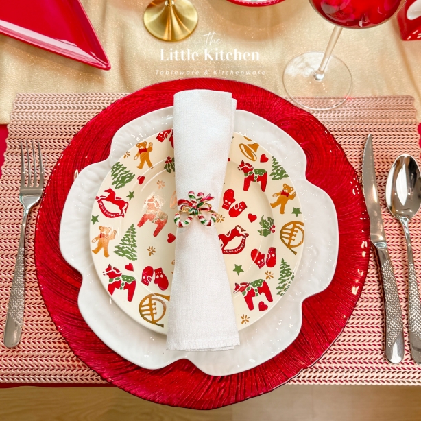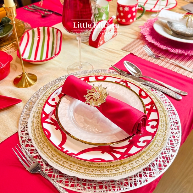 Quà tặng nhỏ: Đặt một hộp quà nhỏ hoặc một chiếc kẹo gậy (Candy Cane) trên đĩa của mỗi vị khách như một lời chào mừng nồng nhiệt.