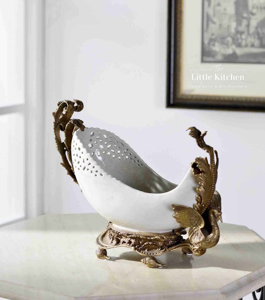 Khay sứ đồng cong lỗ Trắng 48x16x34