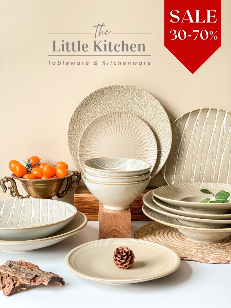 Sale bộ bát đĩa be vệt trắng