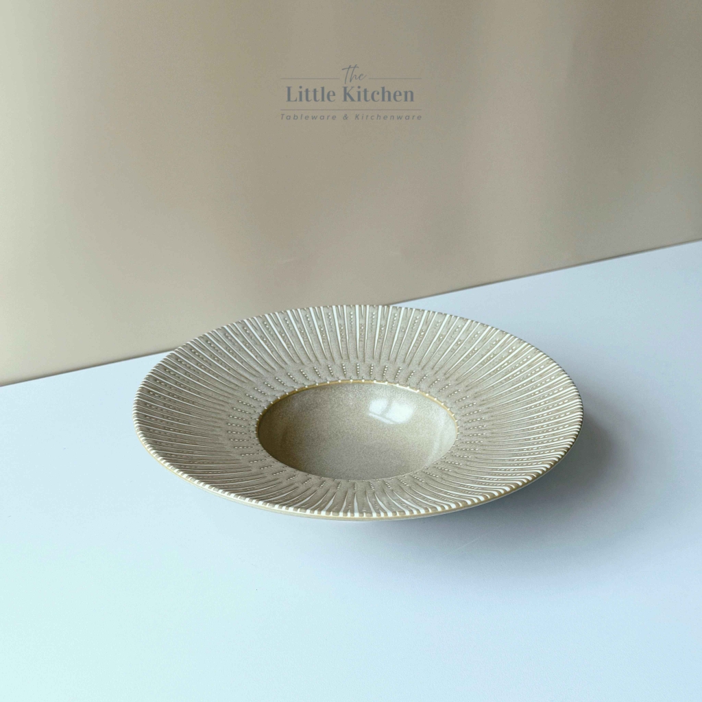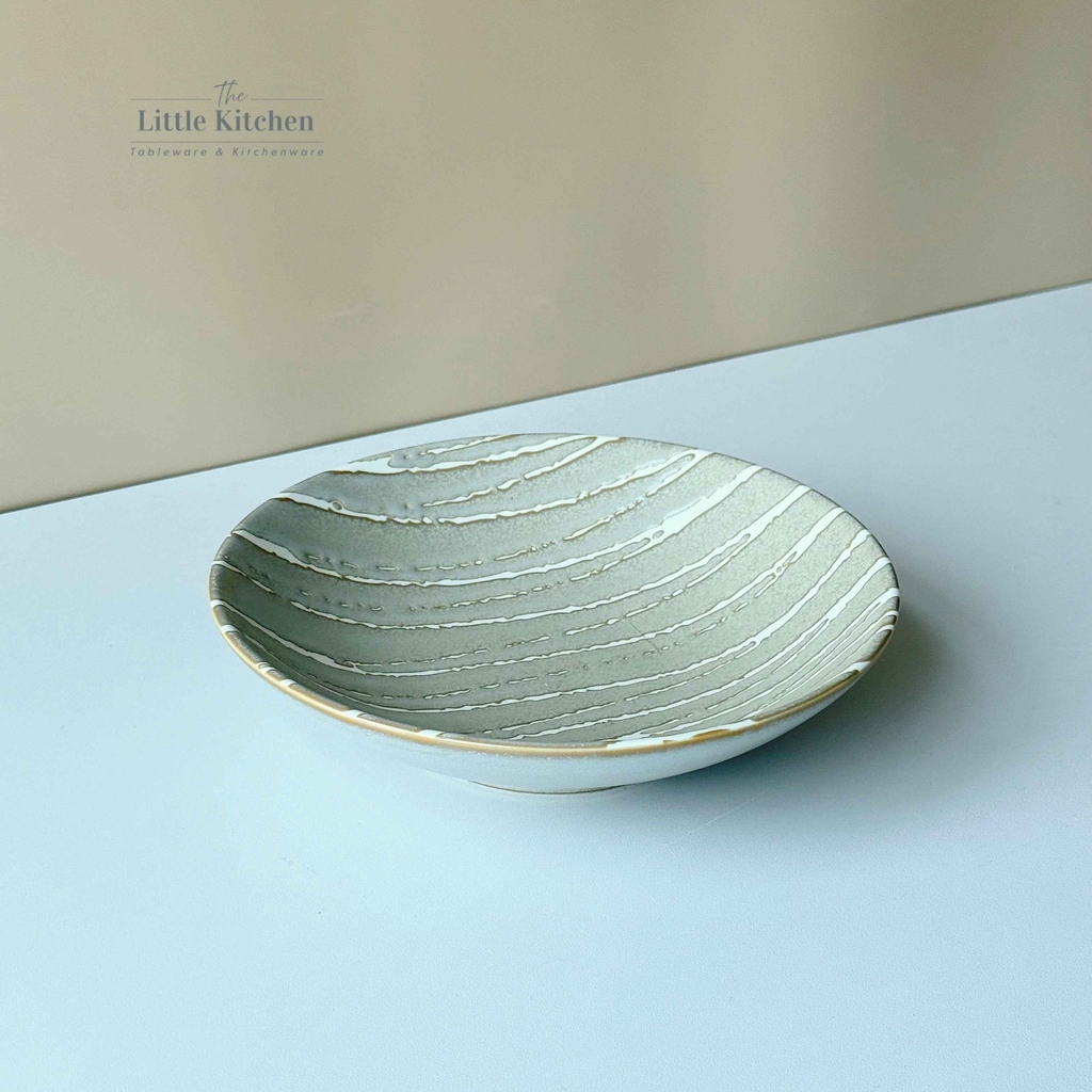 Bộ bát đĩa cao cấp màu ghi họa tiết răng cưa