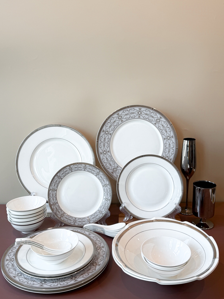 Lý do chọn: Bộ bát đĩa này mang lại vẻ ngoài lịch thiệp, sạch sẽ và cực kỳ "tây". Đây là lựa chọn an toàn cho những gia đình muốn một bàn tiệc trang nhã, không quá phô trương nhưng vẫn rất đẳng cấp.