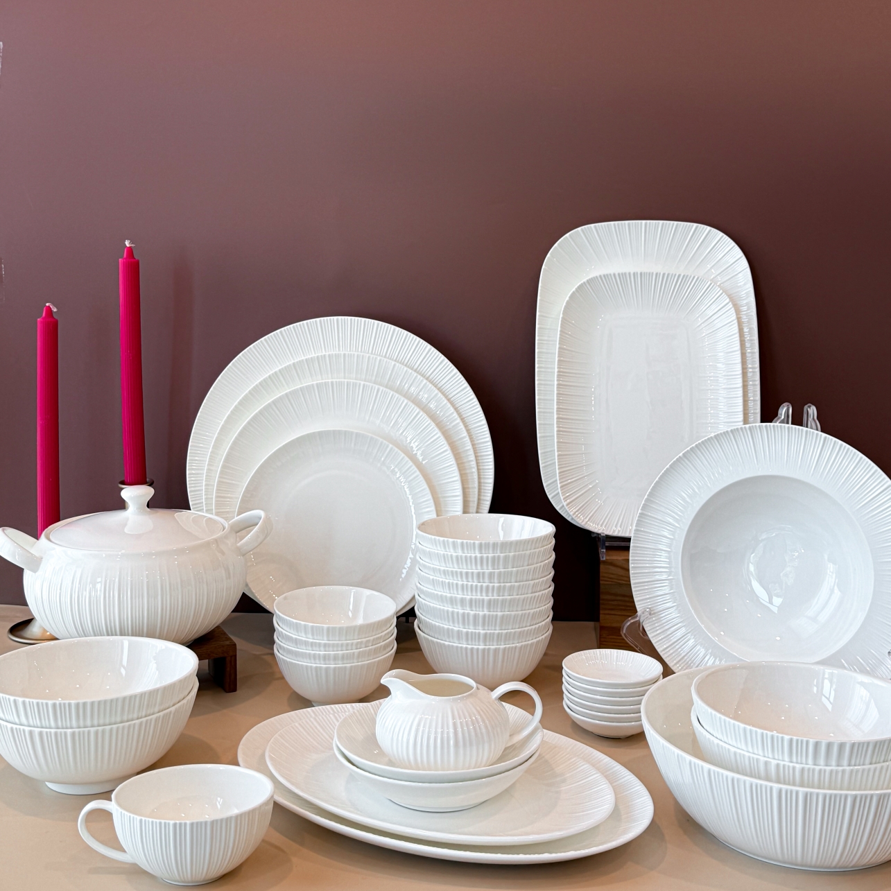 Nếu bạn muốn bàn tiệc Tết toát lên vẻ quyền quý và có chiều sâu, Bộ Sọc Tia là lựa chọn không thể bỏ qua.