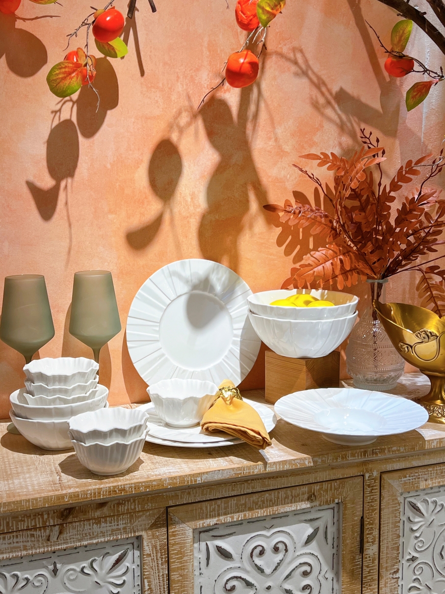 Lấy cảm hứng từ những đường cong mềm mại của chiếc quạt giấy hoặc vỏ sò, bộ bát đĩa này mang đến sự uyển chuyển cho bàn ăn.