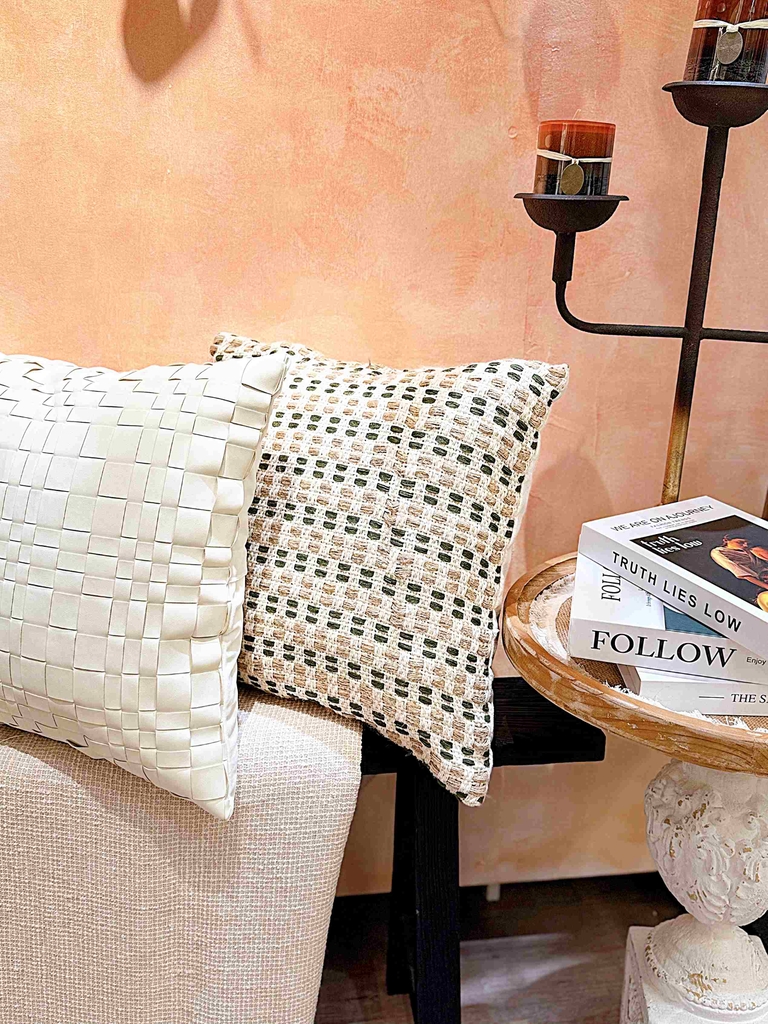 Vỏ gối vuông da lộn ô trắng
